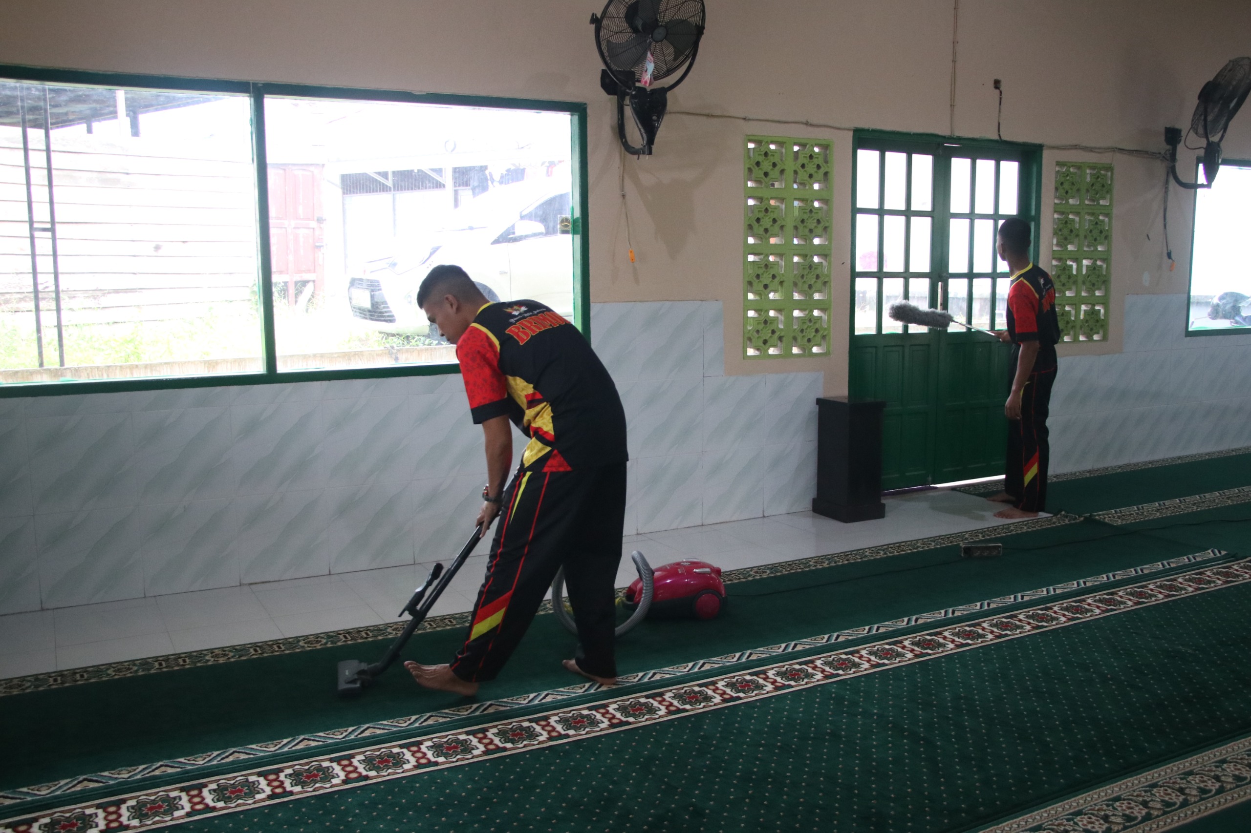 Kegiatan bakti religi ini difokuskan pada kerja bakti kebersihan lingkungan masjid, mulai dari membersihkan area dalam dan luar masjid hingga merapikan halaman sekitarnya. Personel Brimob bersama pengurus masjid bergotong-royong untuk menciptakan suasana ibadah yang bersih dan nyaman.