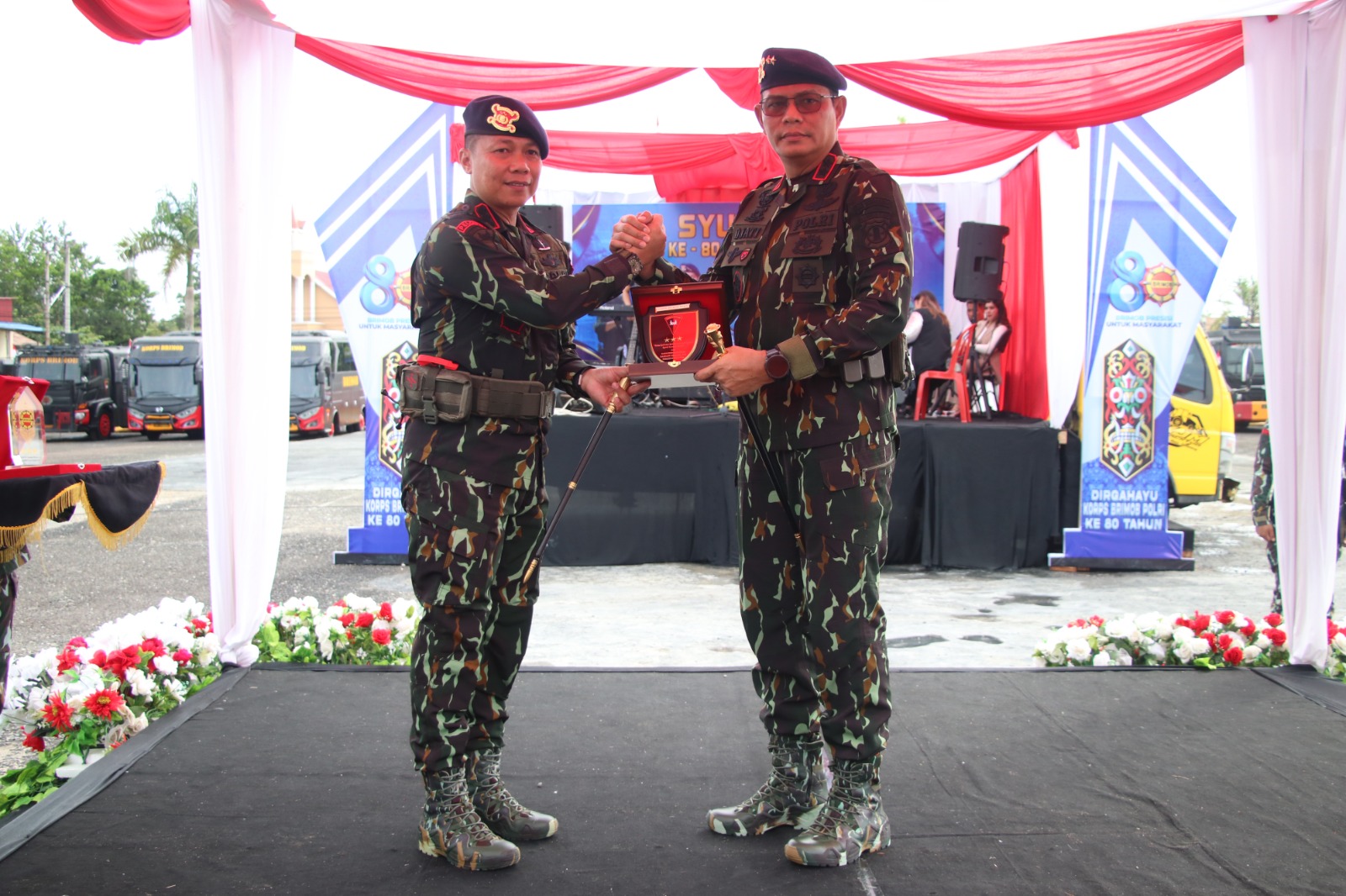 Usai prosesi pemotongan tumpeng, kegiatan dilanjutkan dengan penyerahan piagam penghargaan dari Komandan Korps Brimob Polri kepada Kapolda Kaltara. Piagam tersebut diserahkan secara langsung oleh Dansat Brimob Polda Kaltara sebagai bentuk apresiasi atas dukungan dan kontribusi Kapolda terhadap pelaksanaan tugas-tugas Brimob di wilayah Kalimantan Utara.