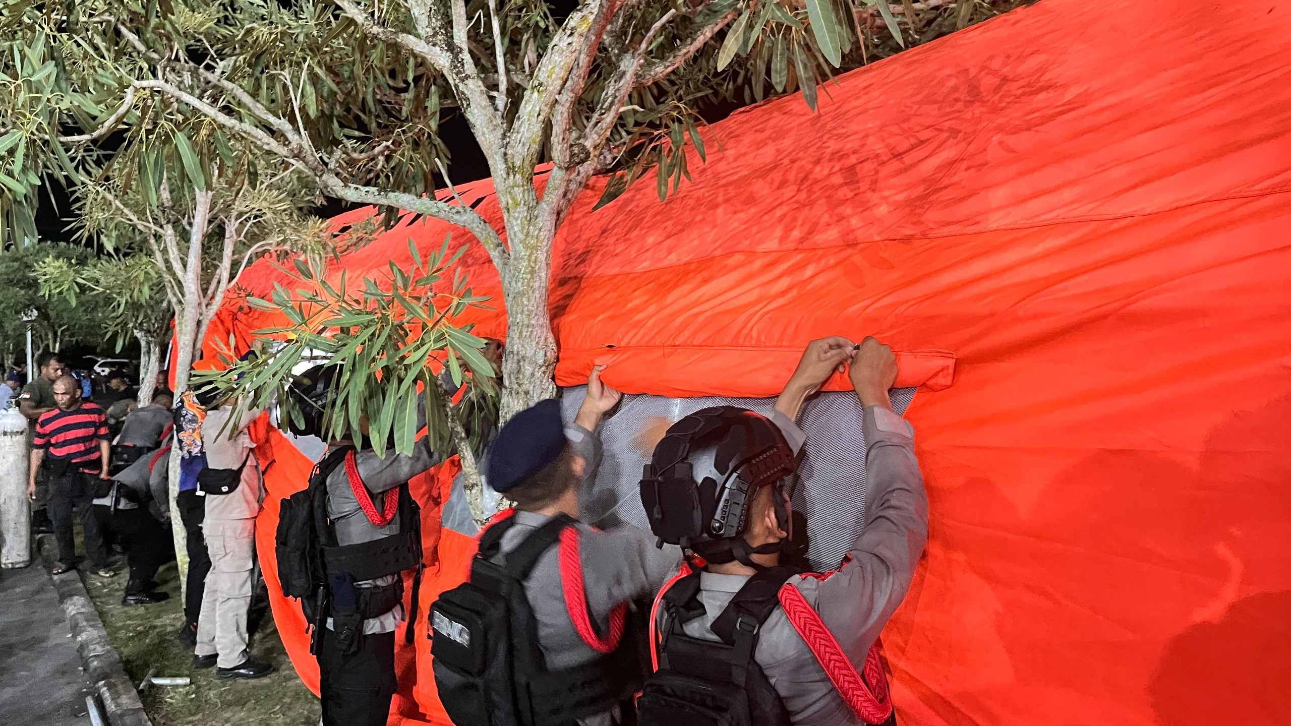 Tim SAR Satuan Brimob Polda Kaltara Bantu Dirikan Tenda Darurat di RSUD Jusuf SK Pasca Gempa Bumi Tarakan