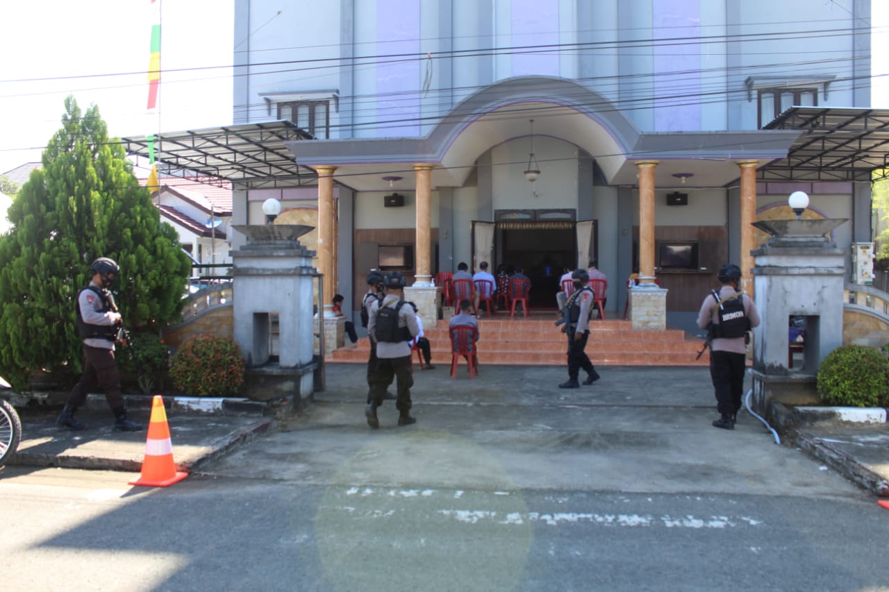 Patroli yang dipimpin oleh Bripka James salawaney bersama anggota menjaga keamanan untuk memberikan rasa aman selama berjalannya kegiatan. Dengan upaya seperti ini diharapkan dapat memberikan kenyamanan dalam kegiatan peribadahan serta menekan penyebaran covid-19.