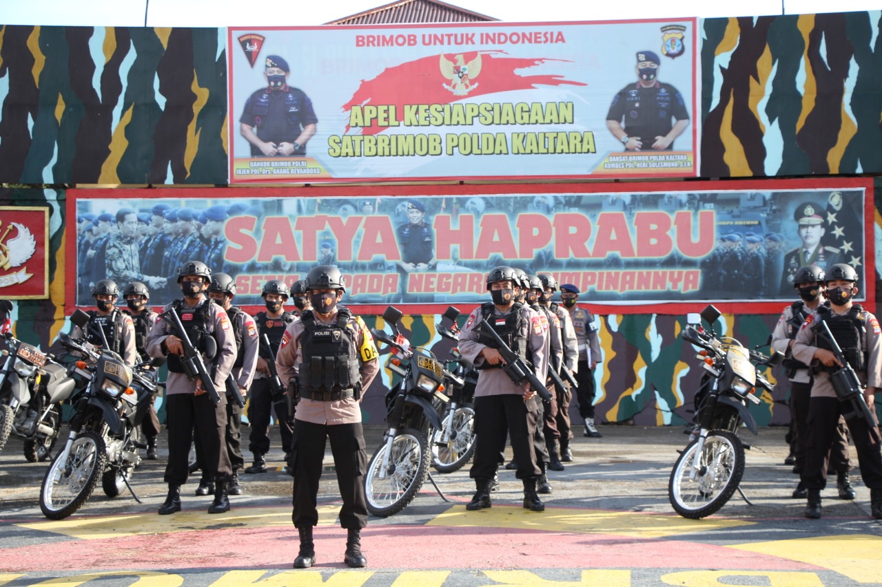 Tarakan – Personel Satbrimob Polda Kaltara laksanakan apel gelar pasukan pengamanan pemilukada tahun 2020 di Mako Satbrimob Polda Kaltara Kota Tarakan. Selasa (08/12/2020).